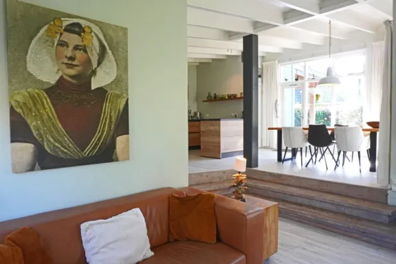 In een charmant laantje aan de duinen ligt deze prachtige bungalow. U komt binnen in de hal waar zich de riante badkamer met douche, bad, wastafel en toilet bevindt. Tevens in de hal nog een apart toilet.
